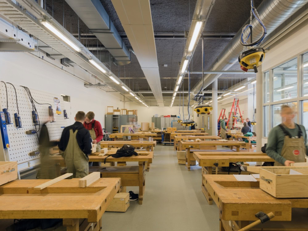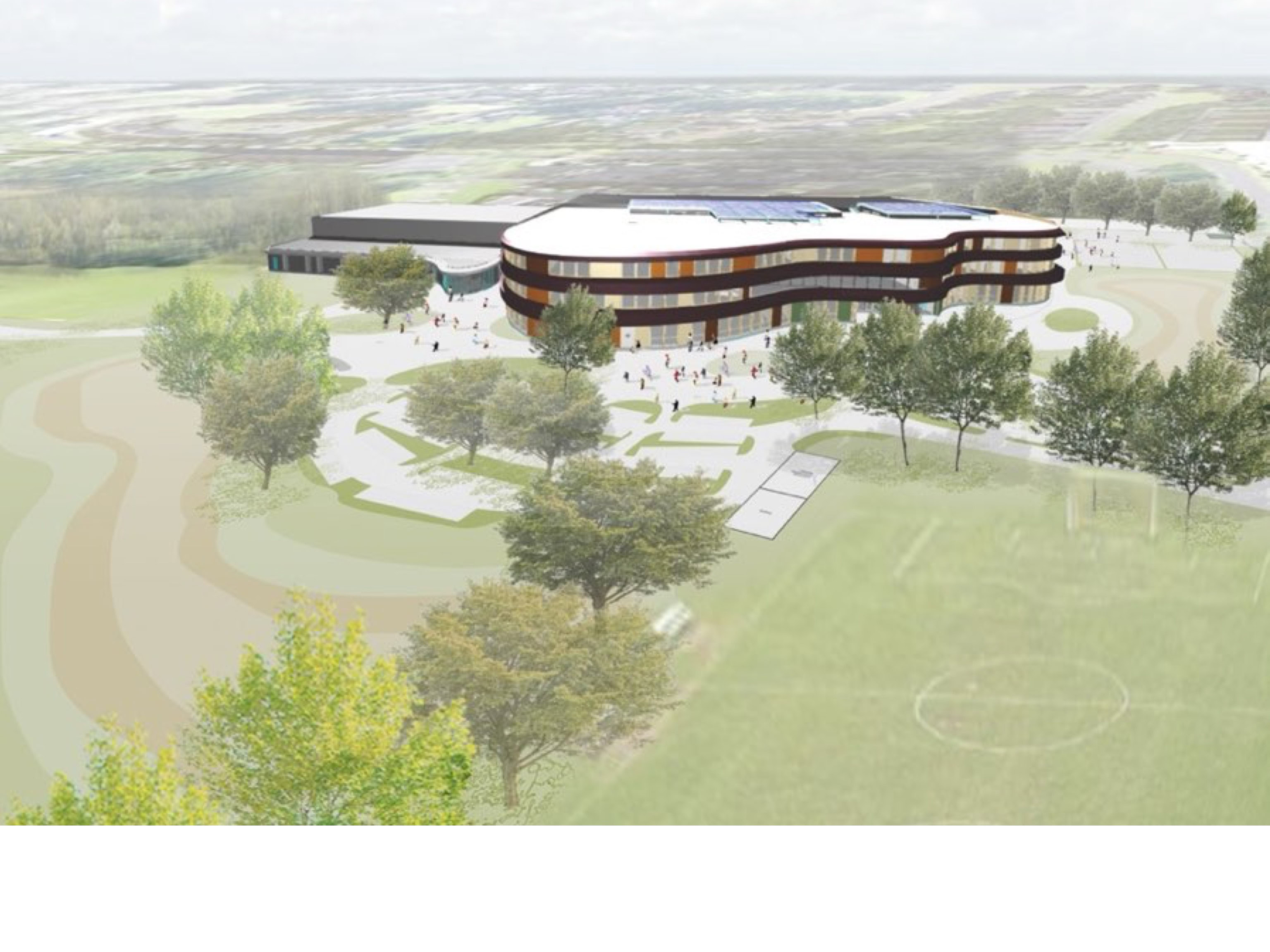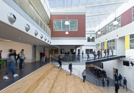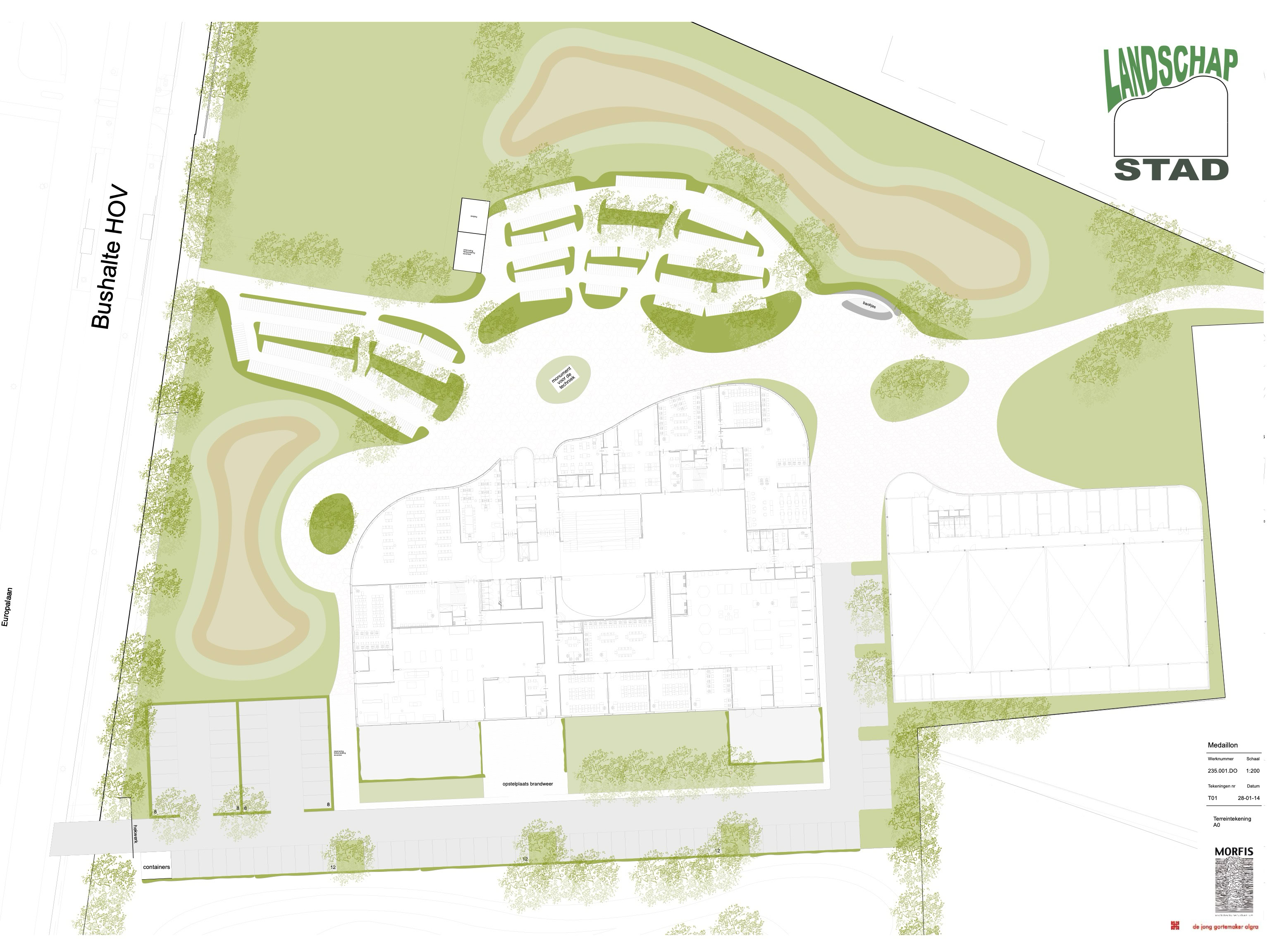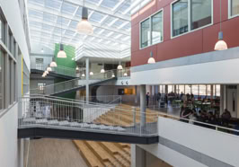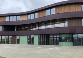 Het C.T. Stork College in Hengelo ligt op de overgang tussen de stedelijke en landschappelijke context . De zuidzijde, gericht naar de stad, is industrieel vormgegeven, verwijzend naar de historisch rijke maakindustrie van Hengelo. In contrast hiermee is golvende noordgevel een organische overgang naar het twentse landschap. Het hart van de school is het centrale atrium, waarin een monumentale tribunetrap en loopbruggen fungeren als verbindende elementen tussen de diverse onderwijsdomeinen. Deze opzet maximaliseert de visuele transparantie en creëert een hoogwaardige ruimtelijke continuïteit binnen een compact volume.