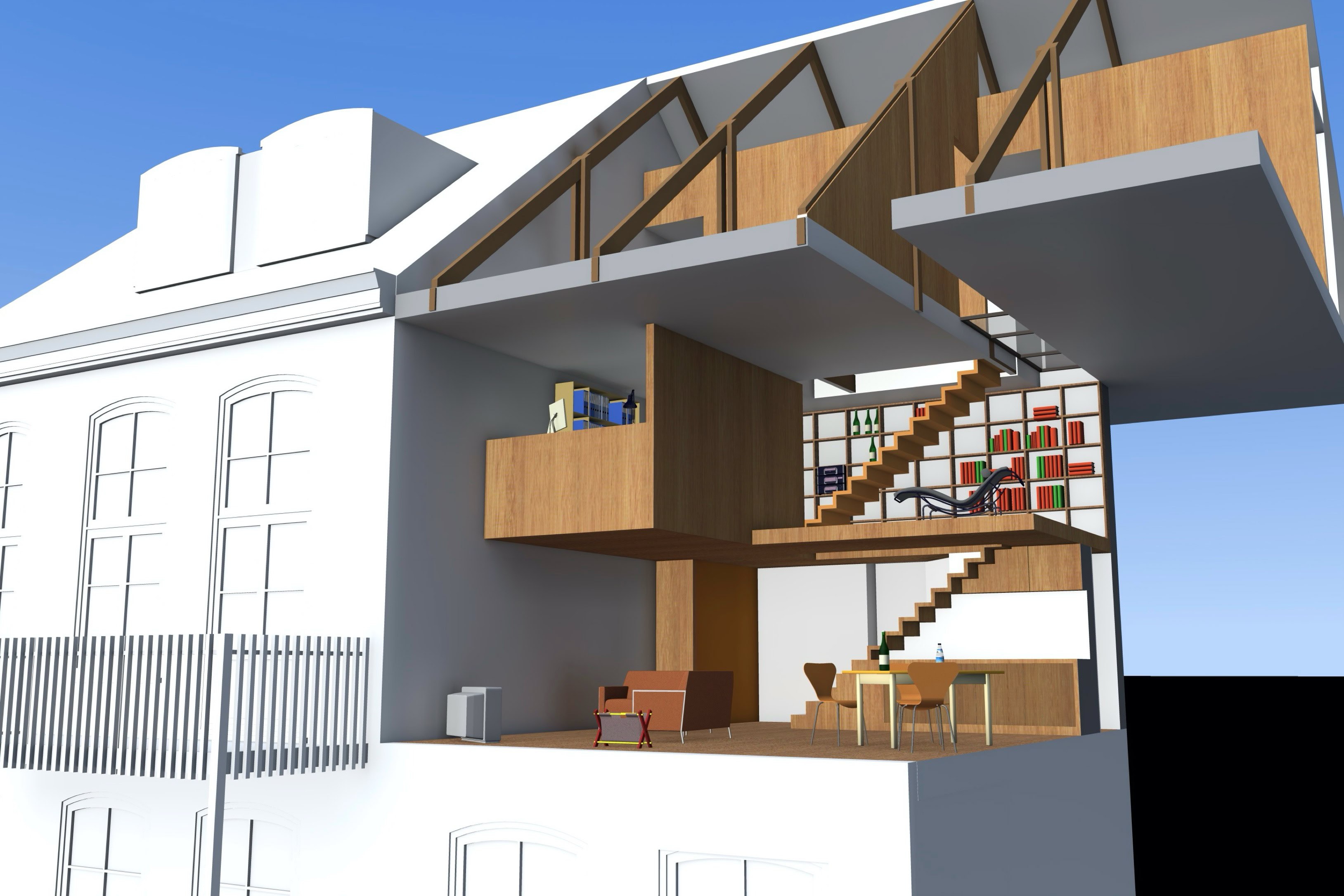 Een pas getrouwd stel kwam naar ons toe met de vraag: we hebben een oud klaslokaal met een stuk zolder gekocht en we willen er een apartement van maken, HELP!