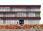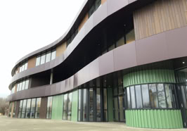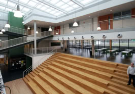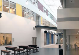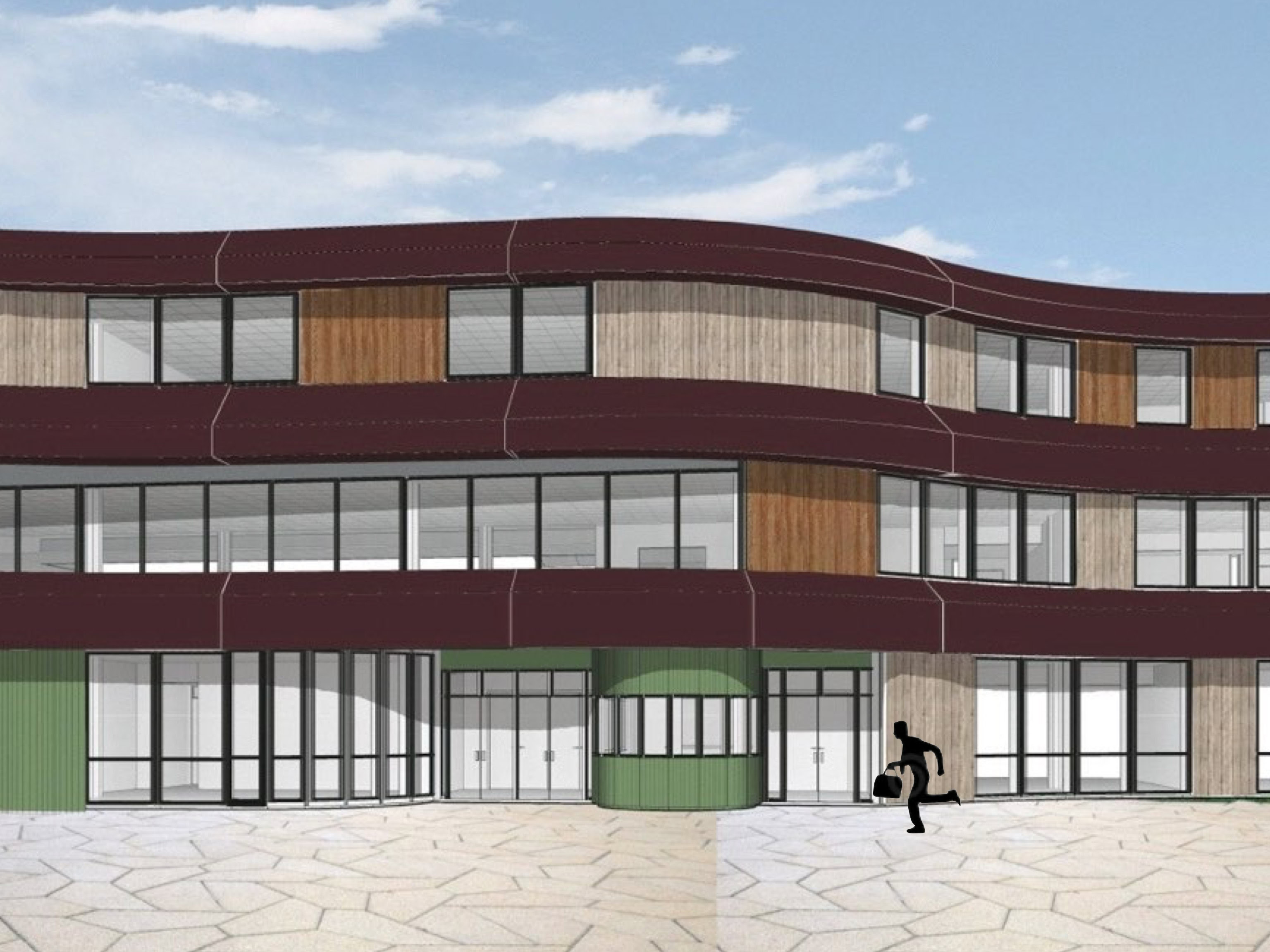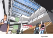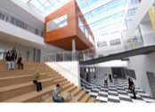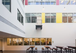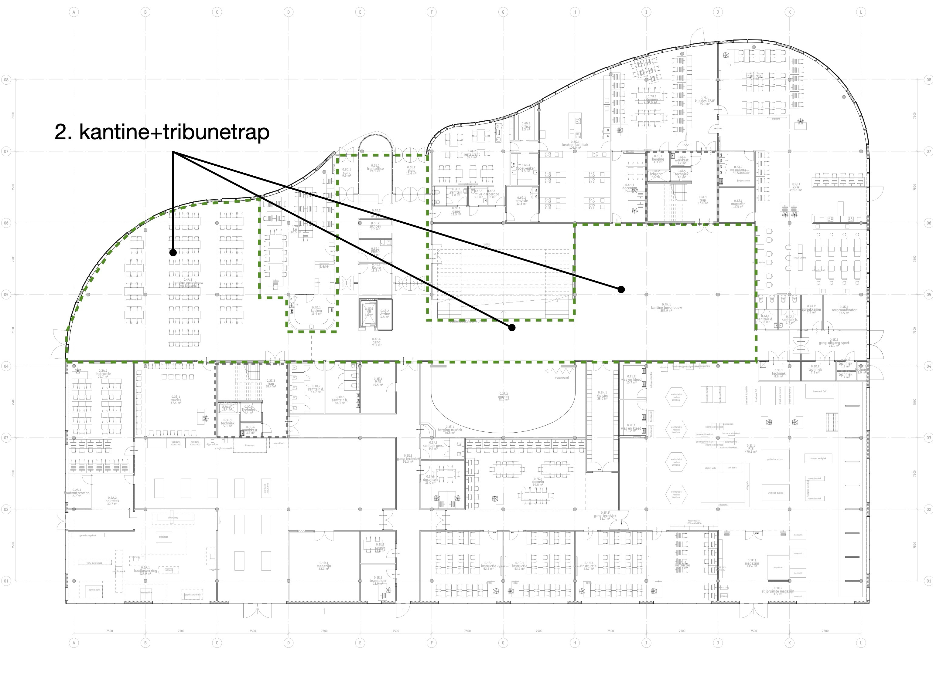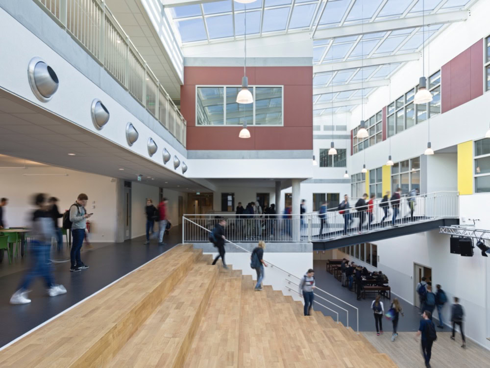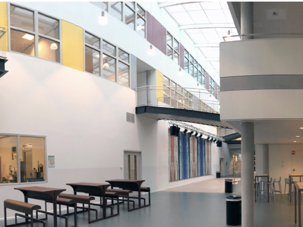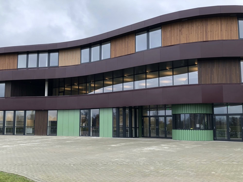 Het C.T. Stork College in Hengelo ligt op de overgang tussen de stedelijke en landschappelijke context . De zuidzijde, gericht naar de stad, is industrieel vormgegeven, verwijzend naar de historisch rijke maakindustrie van Hengelo. In contrast hiermee is golvende noordgevel een organische overgang naar het twentse landschap. Het hart van de school is het centrale atrium, waarin een monumentale tribunetrap en loopbruggen fungeren als verbindende elementen tussen de diverse onderwijsdomeinen. Deze opzet maximaliseert de visuele transparantie en creëert een hoogwaardige ruimtelijke continuïteit binnen een compact volume.
