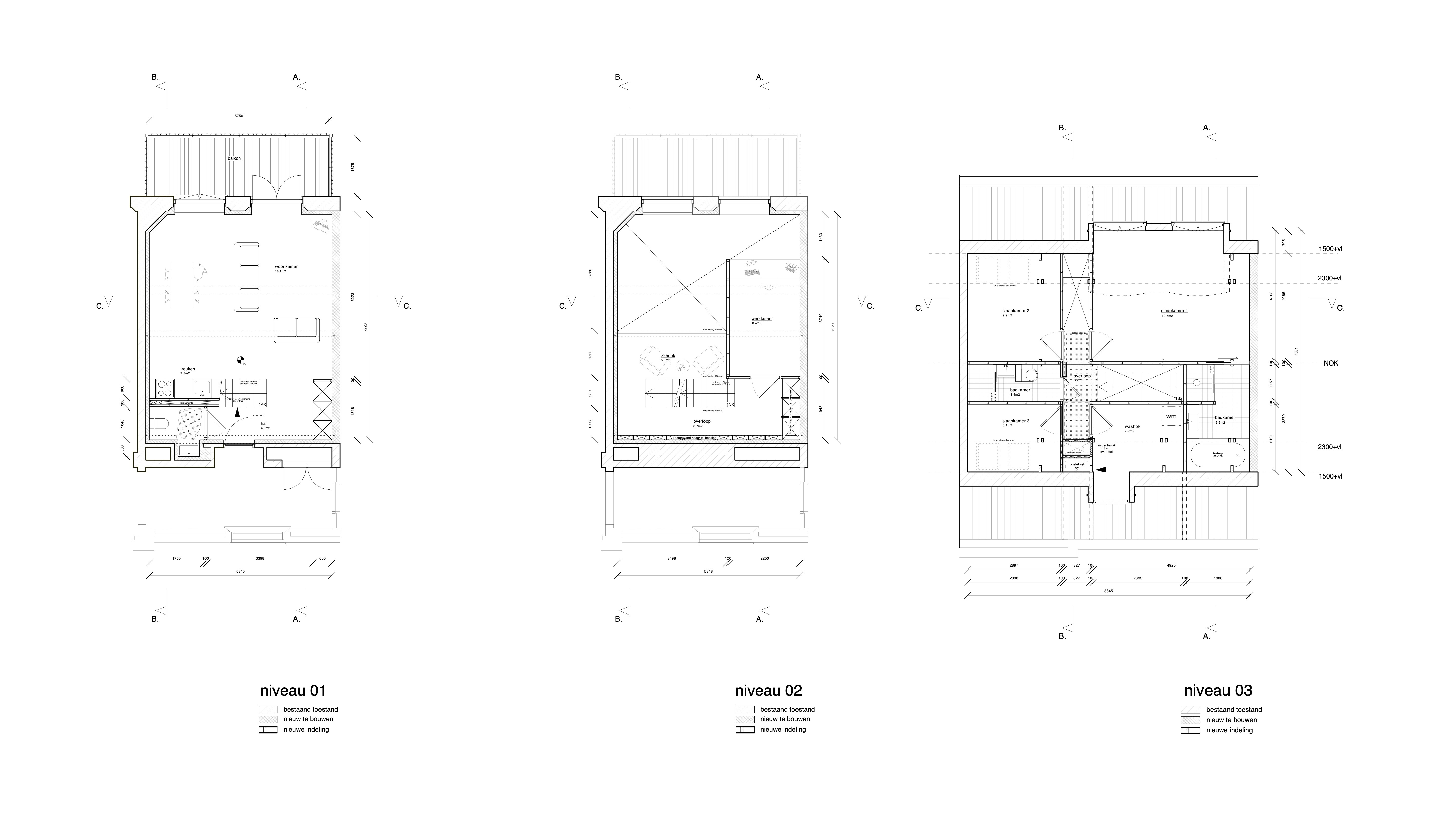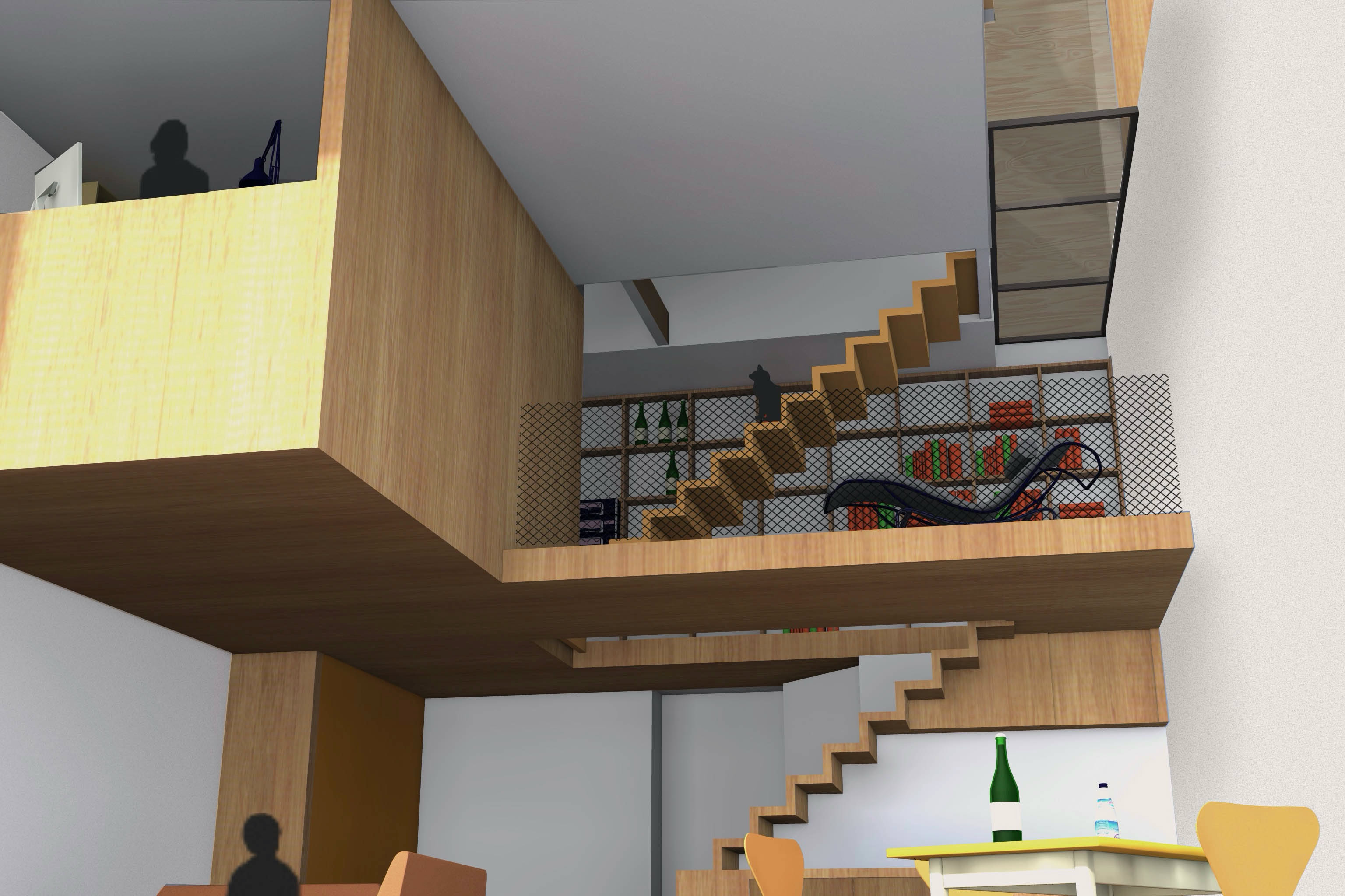 We hebben het ontwerp opgezet als een compact maar hoog opgetrokken ruimtelijk landschap, waarin wonen, werken en ontspannen in één doorlopende verticale compositie zijn samengebracht. In plaats van klassieke verdiepingen is gekozen voor split-levels die visueel met elkaar verbonden blijven.